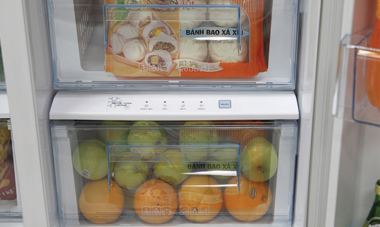 Ngăn giữ thực phẩm chuyên biệt giúp bạn dễ dàng phân loại thực phẩm mà bạn muốn lưu trữ. Hãy phân loại thực phẩm và chọn chế độ bảo quản “RAU”, “CÁ” hoặc “THỊT”, tủ lạnh sẽ điều chỉnh nhiệt độ thích hợp để bảo quản thực phẩm của bạn luôn tươi ngon. Hơn nữa, bạn cũng có thể chọn “NHANH” để làm lạnh thực phẩm nhanh hơn.