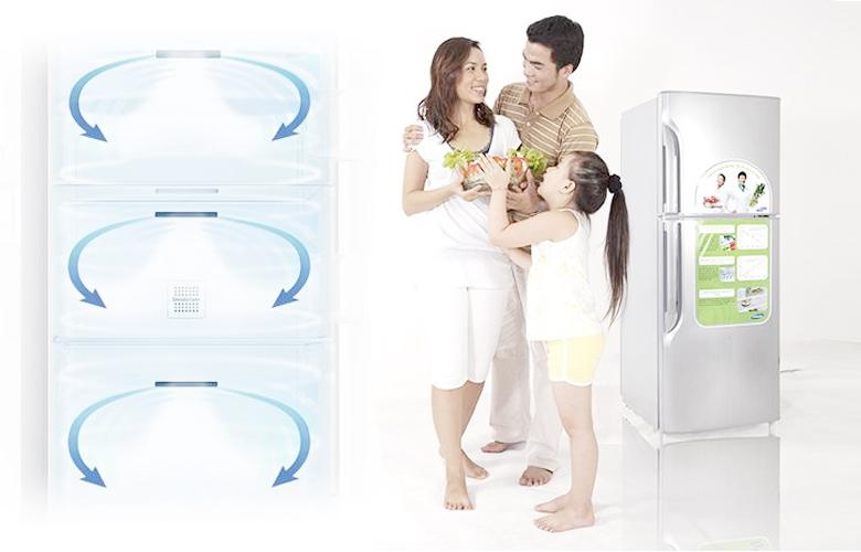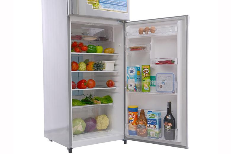 Tủ lạnh có dung tích sử dụng 226 lít với ngăn đông có dung tích 58 lít, ngăn lạnh có dung tích 168 lít, phù hợp cho những gia đình có từ 4, 5 người, để bảo quản một lượng lớn thực phẩm và đáp ứng nhu cầu giữ lạn thực phẩm, làm đá… cho mọi thành viên trong gia đình.