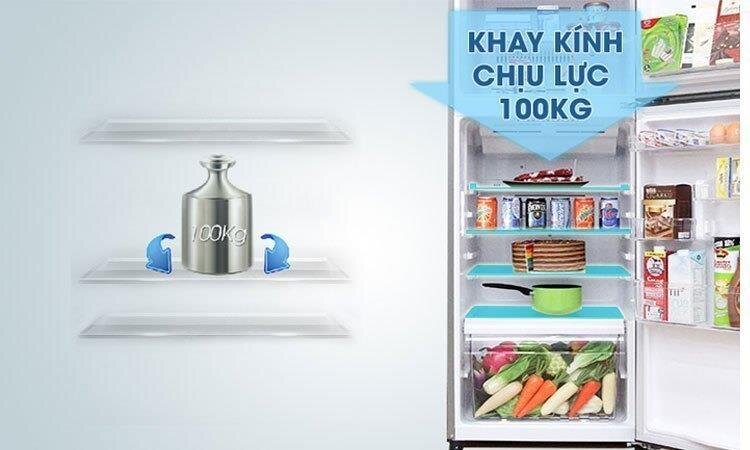 Hệ thống khay kệ được làm bằng kính chịu lực bền bỉ, bố trí khoa học, dễ dàng tháo lắp, thay đổi độ cao kệ linh hoạt. Với khả năng chịu trọng lượng lên đến 100 kg, bạn có thể sắp xếp thực phẩm thoải mái mà không sợ kệ bị nứt, vỡ.