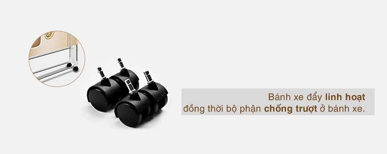 Máy sấy quần áo sowun có bánh xe đẩy tiện lợi giúp bạn có thể dễ dàng di chuyển thiết bị từ khu vực này qua khu vực khác nhanh chóng, bánh xe chống trượt giúp bạn đặt máy xuống không bị trôi.
