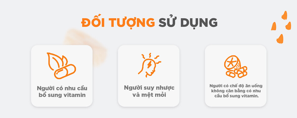 Bổ sung bổ sung 12 loại Vitamin thiết yếu cho cơ thể mỗi ngày: β-carotene, B1, B2, B6, B12, C, D, E, Niacin, acid panthonenate, acid folic, Biotin.