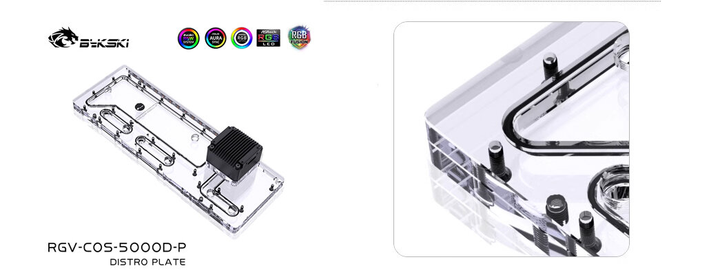 Chất liệu Acrylic trong suốt được sản xuất bởi Mitsubishi với tổng độ dày 19mm, cùng với hệ thống đèn LED rực rỡ mọi chỗ giúp các sản phẩm Bykski tạo nên vẻ đẹp không thể cưỡng lại. Hệ thống đường nước trong tấm nước được thiết kế để lan toả ánh sáng nhiều nhất, và đẹp nhất có thể.