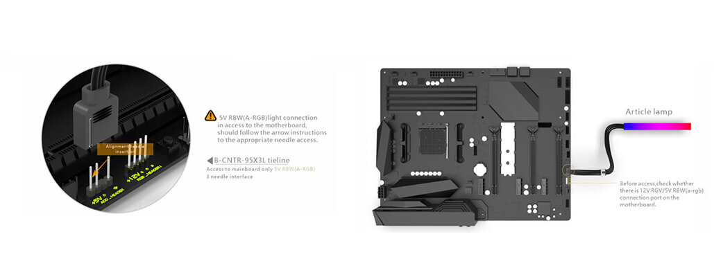Được trang bị đèn led 5V RBW ARGB, tấm nước và block CPU có thể tạo ra đến 16,7 triệu màu khác nhau cùng độ sáng cực mạnh nhưng không hề gây chói sáng khi sử dụng. Tất cả đèn Led của Bykski đều tương thích với cổng A-RGB 3pin của 100% các bo mạch chủ trên thị trường và đồng bộ LED thông qua phần mềm của bo mạch chủ.