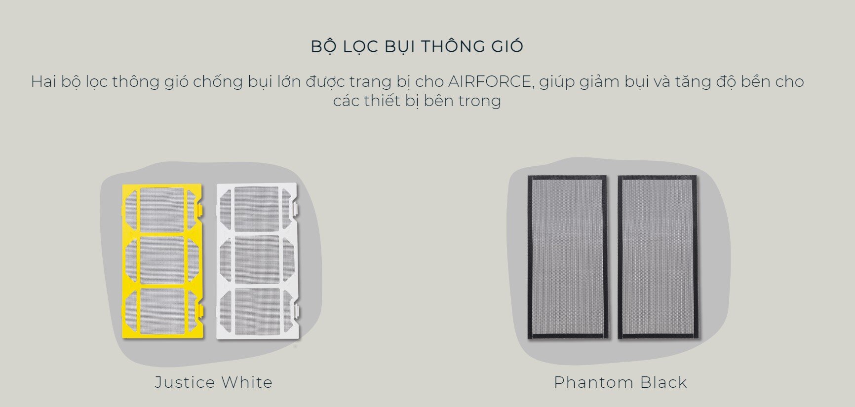 Hai tấm lưới chống bụi lớn được trang bị trên khung AIRFORCE giúp tăng hiệu quả giảm bụi và bảo vệ phần cứng của PC.