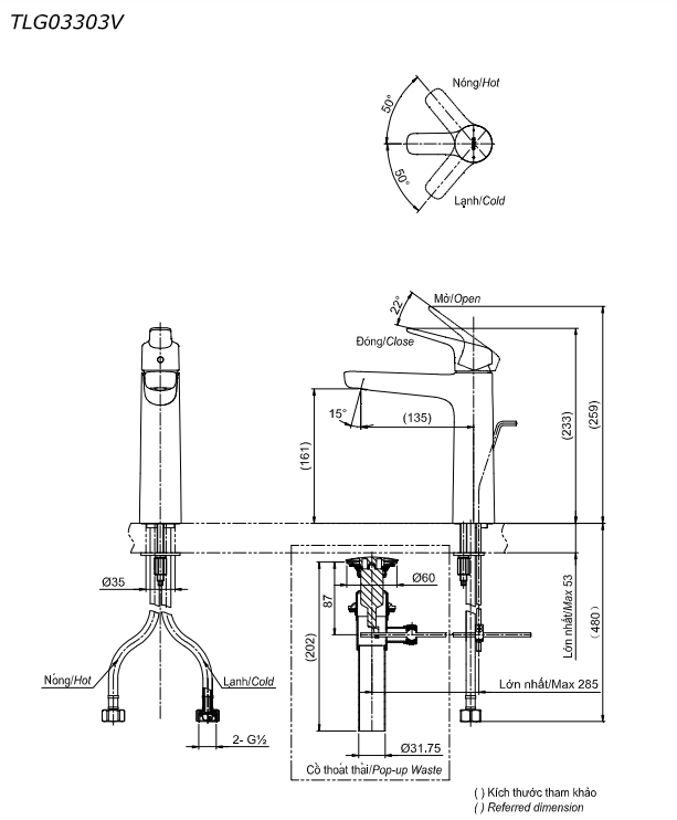 Bản vẽ kỹ thuật vòi chậu lavabo nóng lạnh GS TOTO TLG03303V