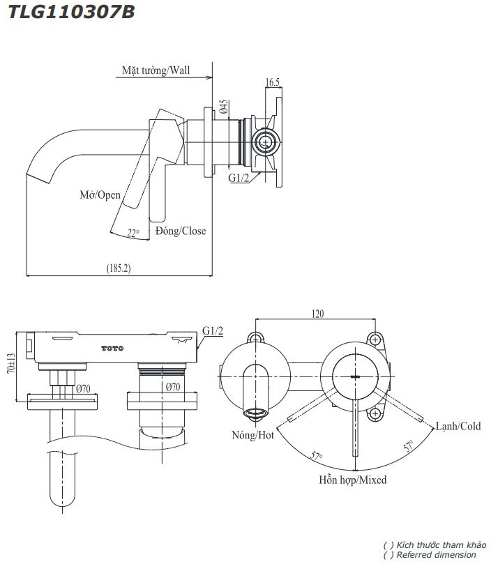 Bản vẽ kỹ thuật Vòi lavabo gật gù nóng lạnh gắn tường GF TOTO TLG11307BA