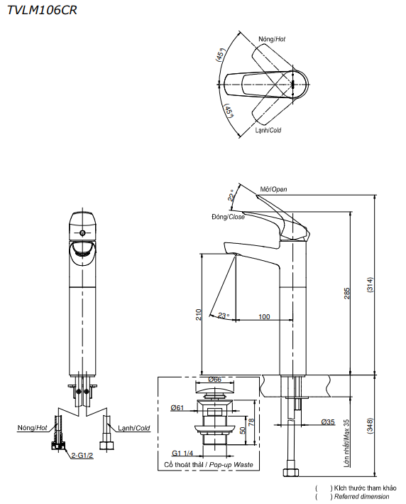 Bản vẽ kỹ thuật vòi chậu lavabo nóng lạnh CRES TOTO TVLM106CR