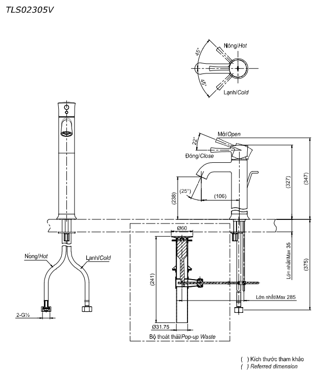 Bản vẽ kỹ thuật vòi chậu lavabo nóng lạnh LN TOTO TLS02305V