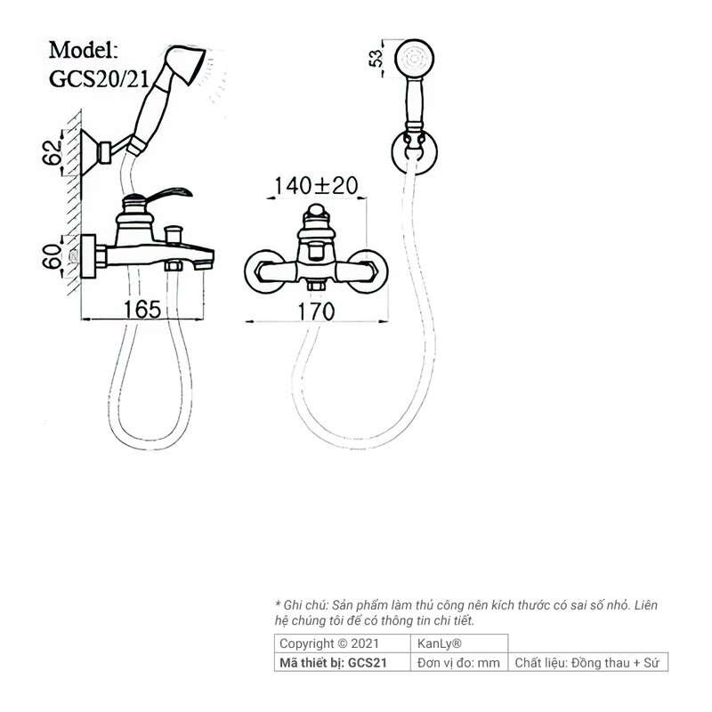 Thông tin sản phẩm bộ sen tắm nóng lạnh bằng đồng Kanly GCS21