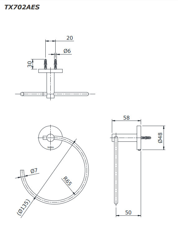 Bản vẽ kỹ thuật vòng treo khăn TOTO TX702AES