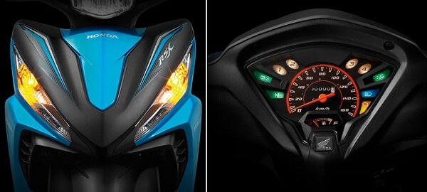 Honda Wave 110 RSX Fi có thiết kế phía trước ấn tượng và nổi bật với những đường cắt sắc, gọn từ đèn xi nhan đến ốp phía trước tạo vẻ đẹp mạnh mẽ, thể thao hơn, phù hợp với các bạn trẻ năng động. Mặt đồng hồ được thiết kế hiện đại, bố trí khoa học, dễ dàng quan sát các thông số vận hành.