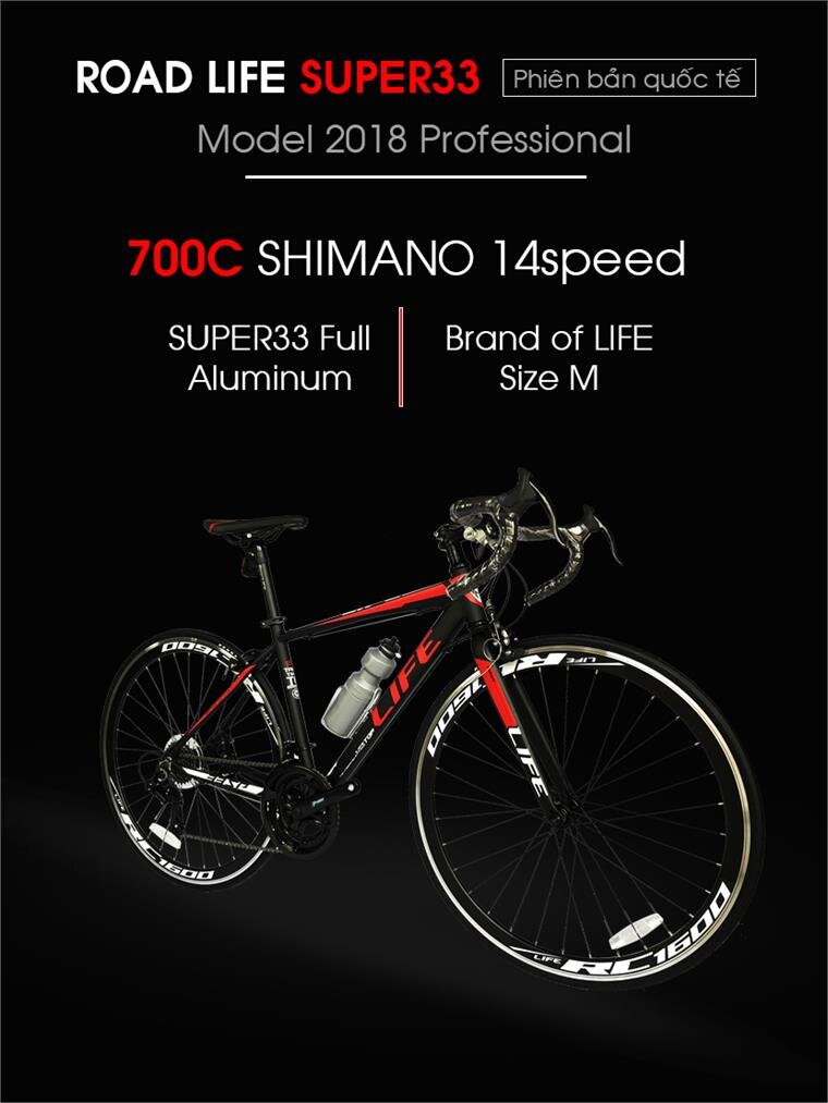 Xe đạp đua Life Super33 được hãng Xe đạp Life tung ra thị trường năm 2018. Thiết kế khung xe khí động học giảm tối đa lực cản gió được sản xuất trên dây truyền công nghệ Châu Âu mới nhất hiện nay đạt độ tối ưu nhất. Khung nhôm được xử lý bề mặt và được phủ lớp sơn tĩnh điện bền chắc. Super33 được trang bị bộ truyền động Shimano đầy mãnh lực với 14 tốc độ.