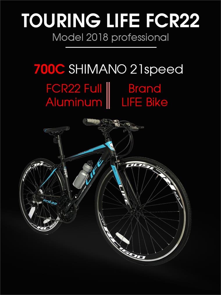 Xe đạp touring Life FCR226 được hãng xe đạp LIFE nâng cấp cải tiến toàn bộ từ kiểu dáng tới chất lượng. Với thiết kế khung chuẩn tối ưu kết hợp cặp bánh lốp 700x28C của xe đua giúp xe hoàn hảo hơn, đi nhanh hơn, đạp nhẹ hơn so với xe truyền thống. FCR22 không chỉ được đánh giá là chiếc xe chạy đường dài mà chiếc xe đạp thể thao đích thực chạy trong thành phố.  Touring FCR22 được xem là chiếc xe full nhôm kết hợp sét đồ Shimano nhưng giá rất hợp lý.