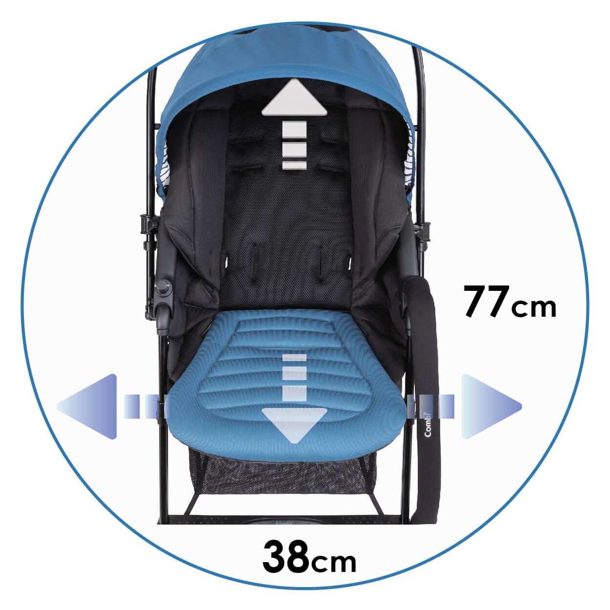 Lòng ghế rộng 38cm, dài 77cm – kích thước vượt trội nhất trong tất cả các dòng Combi.