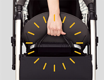 * Xách xe đẩy 2 chiều Combi Umbretta Premium bằng 1 tay dễ dàng nhờ thiết kế quai xách tiện lợi giúp mẹ 1 tay bế bé, 1 tay giữ xe được chắc chắn, dễ dàng hơn, nhất là khi di chuyển.